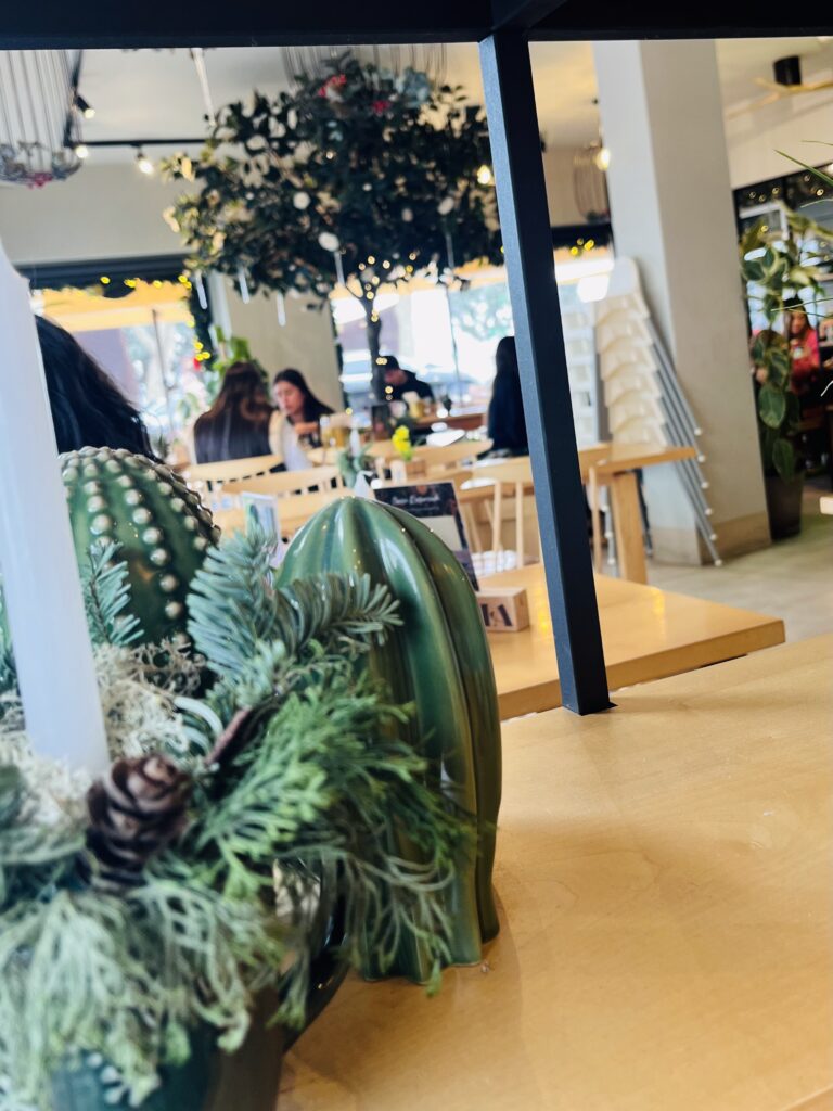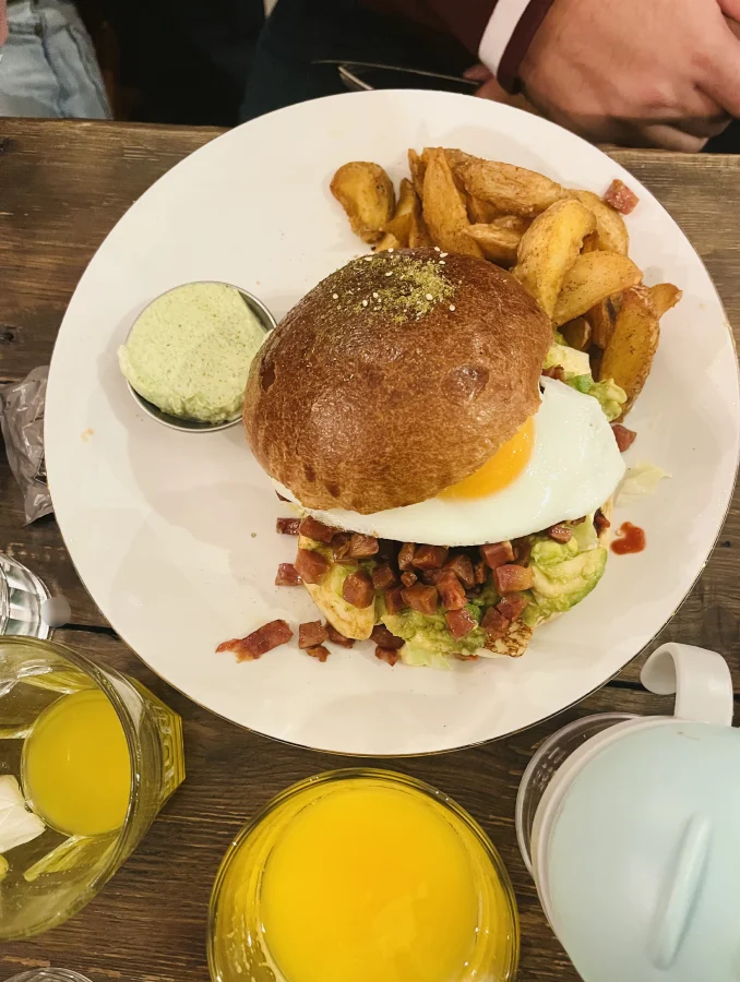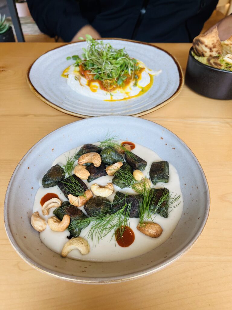 There’s a good selection of vegan and vegetarian options and fresh juices. I had the spinach gnocchi with almonds and coconut cream, with a tirasmitsu and it was delicious. The labneh at around 7 euros felt like a great deal. There’s a kids’ sandwich which is a small burger with fries. We’ll be back to try their falafels and tartines, which looked amazing!