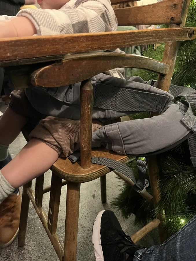 There is an outdoor space and games for kids, plus a high chair, although there’s no buckle. There is no soup on the Menu (in case you need to feed your baby) and no changing table in the toilets, which is important to know with a baby.